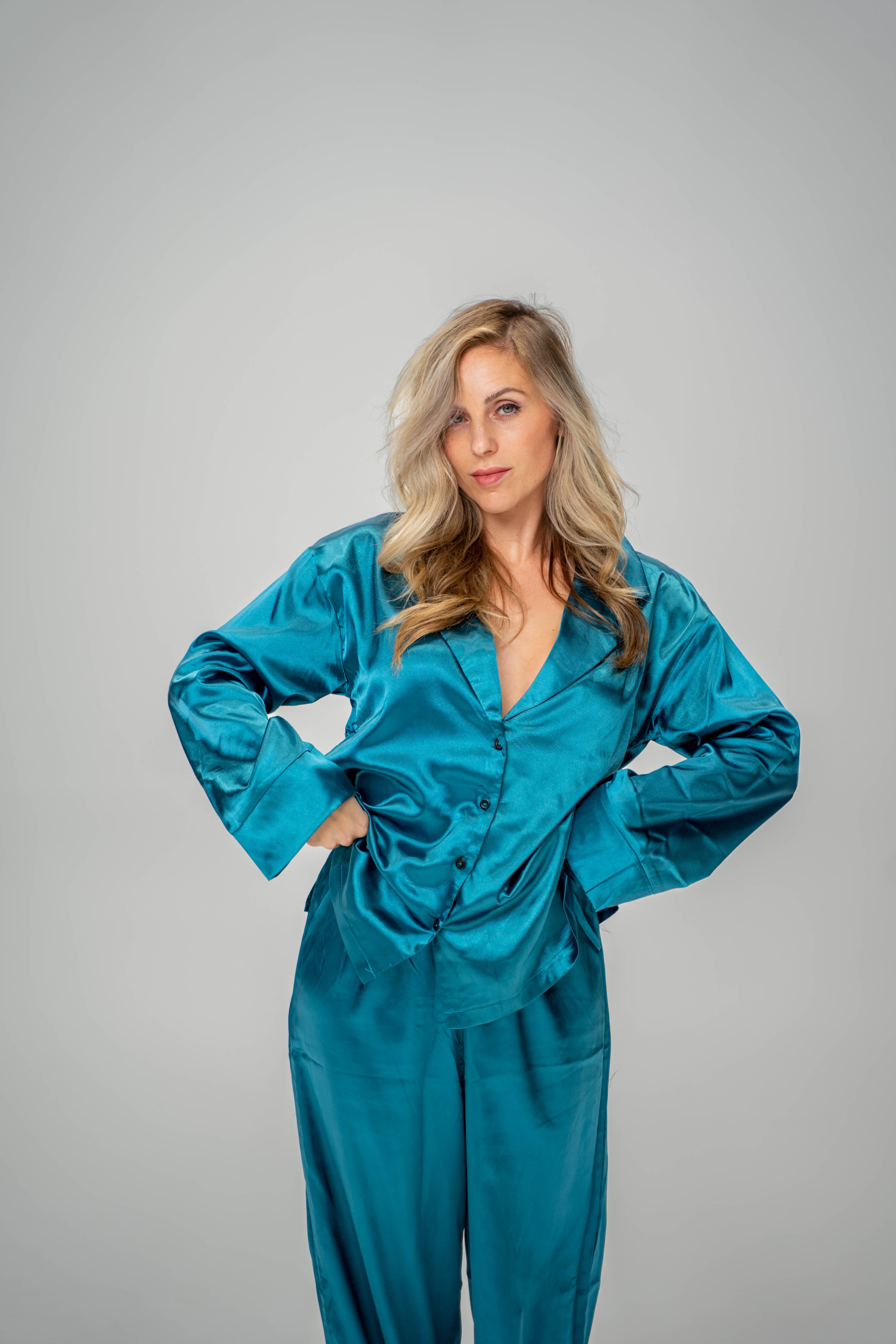 De Ashley pyjama set van nova is de perfecte keuze voor een ontspannen avond of voor een fijne slaap ervaring. Gemaakt van heerlijke satijnen stof, biedt deze pyjama een zijdezacht gevoel voor een extra fijne draag ervaring. Prachtige V-hals geeft de pyjama een sexy look!