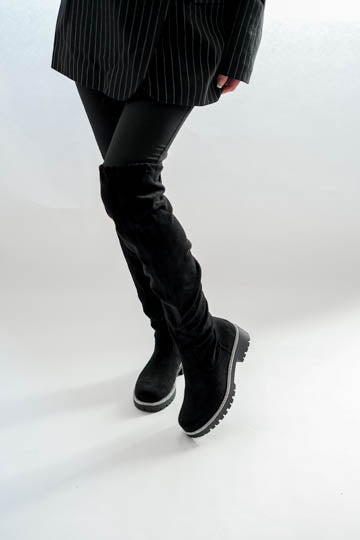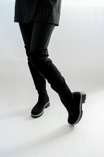 Stap in luxe met de Celestia Suede Vetvel Laarzen! Deze prachtige overknee laarzen zijn gemaakt van hoogwaardig suede vetvel en stralen pure elegantie uit.