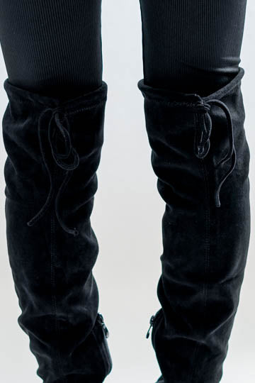 Dankzij de mooie touwtjes aan de achterkant kun je de pasvorm eenvoudig aanpassen, zodat de laarzen perfect aansluiten rond je benen. Of je ze nu combineert met een jurk, rok of skinny jeans deze laarzen maken elke outfit helemaal af!