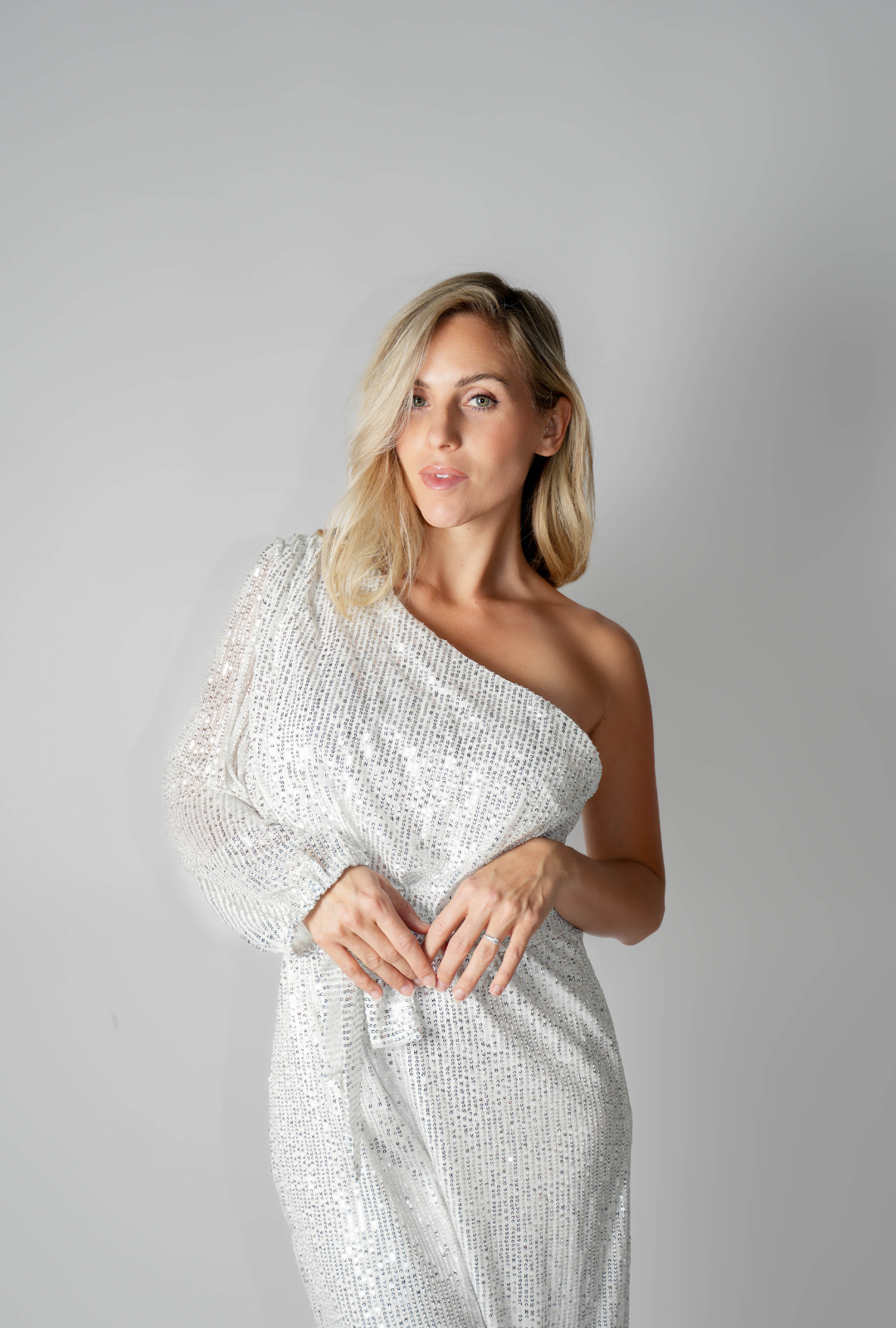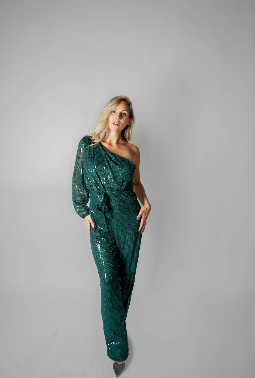 Deze off shoulder glitter jumpsuit combineert comfort met een luxe uitstraling. De subtiele glinstering en het elegante off shoulder ontwerp zorgen voor een verfijnde look.